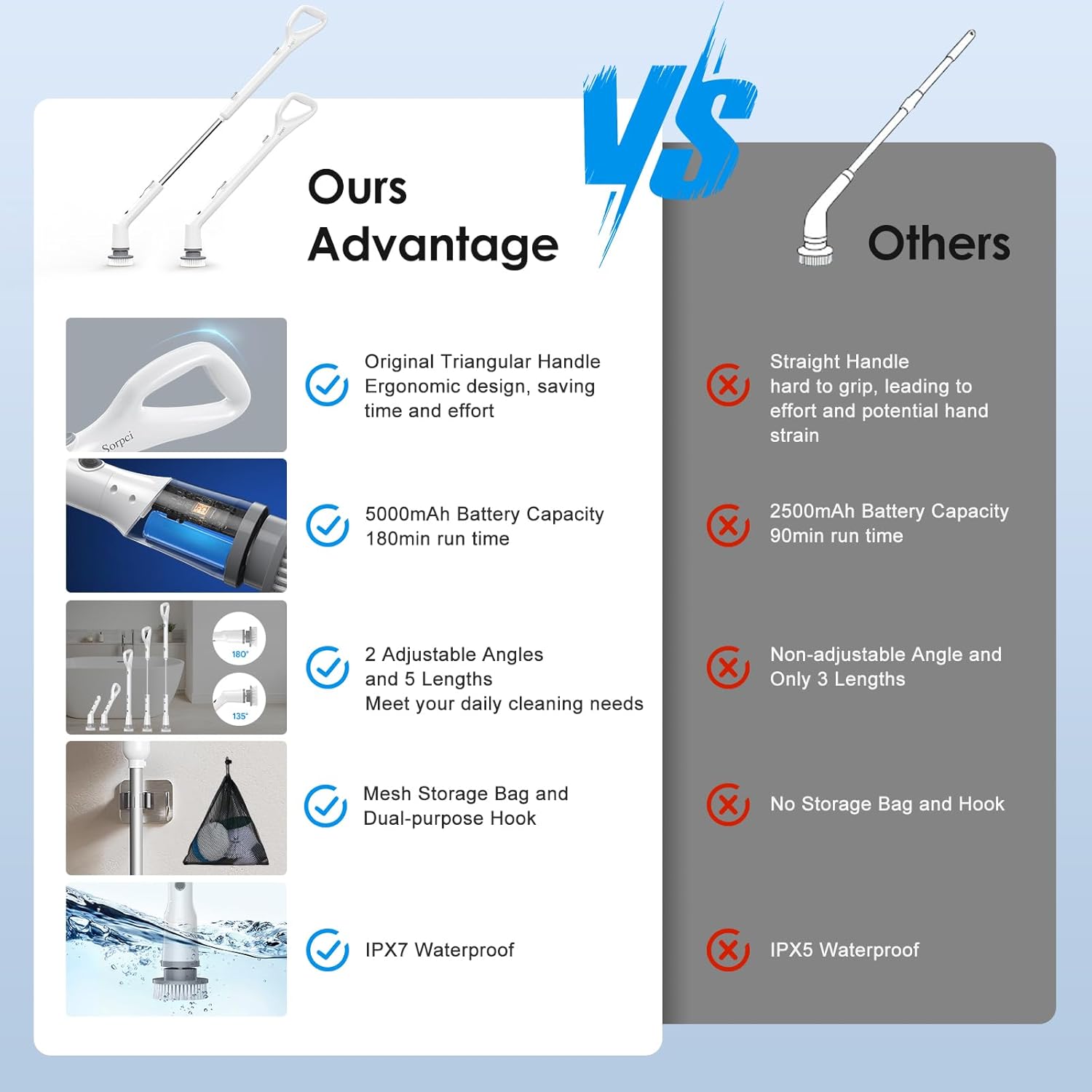Elevate your cleaning game and experience the difference with the Electric Spin Scrubber. Embrace a life where cleaning no longer feels like a chore, but a quick and effortless task that fits seamlessly into your busy lifestyle. Make the smart investment in your home cleaning today and feel the satisfaction of a clean space without the back-breaking effort.